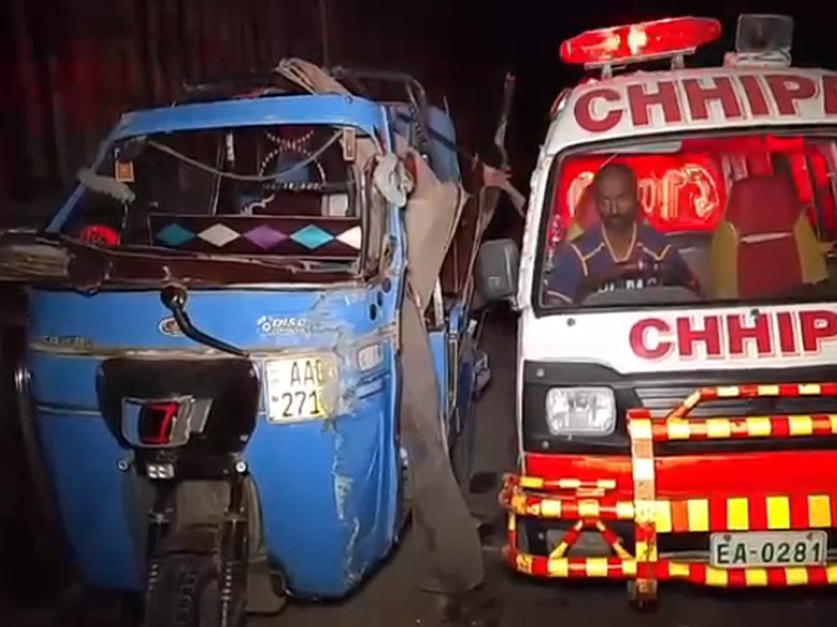 کراچی: کورنگی کراسنگ پل پر بریک فیل رکشہ الٹ گیا، 8 افراد زخمی
